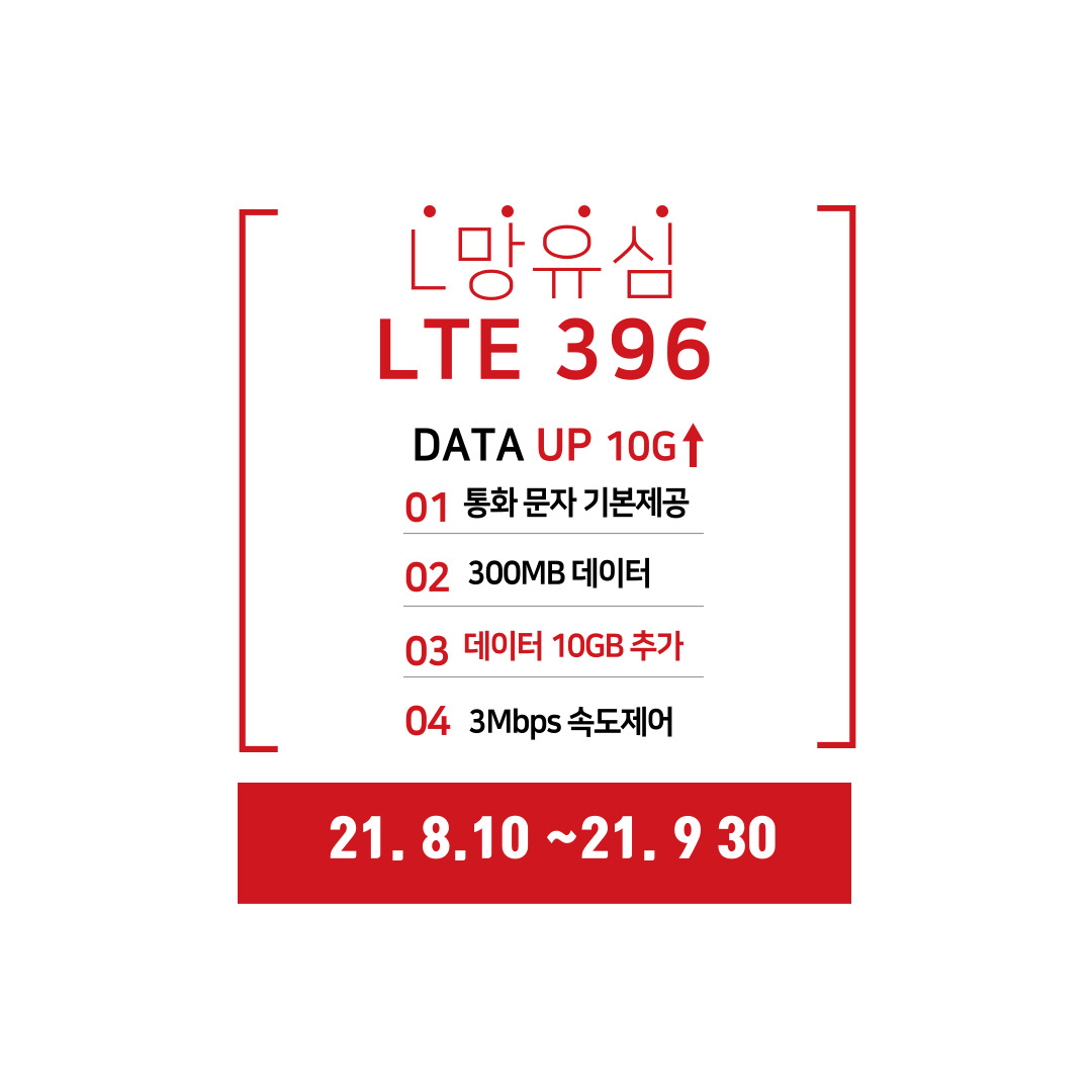LGU+ 선불유심 LTE 396 요금제 파격 프로모션