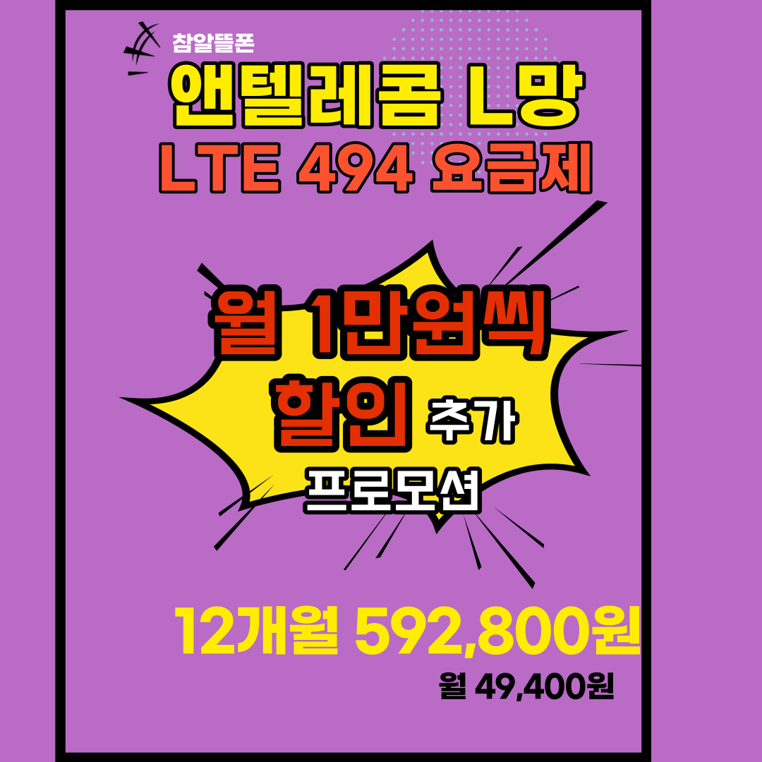 하지만 월 제공되는 10GB의 데이터가 턱없이 부족했던 분들도 있습니다. 이런분들은 가격이 비싸더라도 월 77,000원의 선택 770 요금제를 사용하셨습니다. 이 분들께 좋은 소식이 있습니다. 12개월 약정조건(360일 기준 592,800원)으로 770요금제를 월 49,400원의 가격에 드리는 494요금제가 탄생!! 월 최대 71GB 사용이 가능하기때문에(10GB사용 후 매일 2GB씩 제공됩니다) 이것이야말로 가격도 착한 선불폰 전용 '중간요금제'가 아닐지~!!?