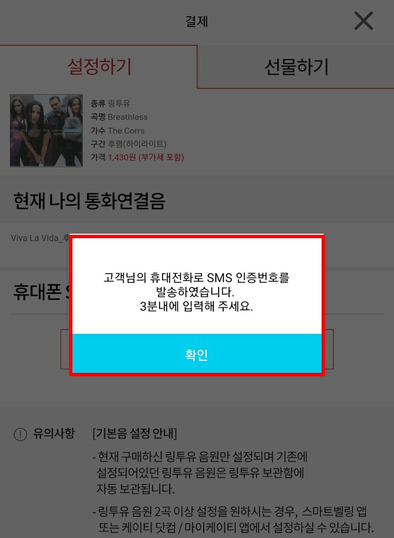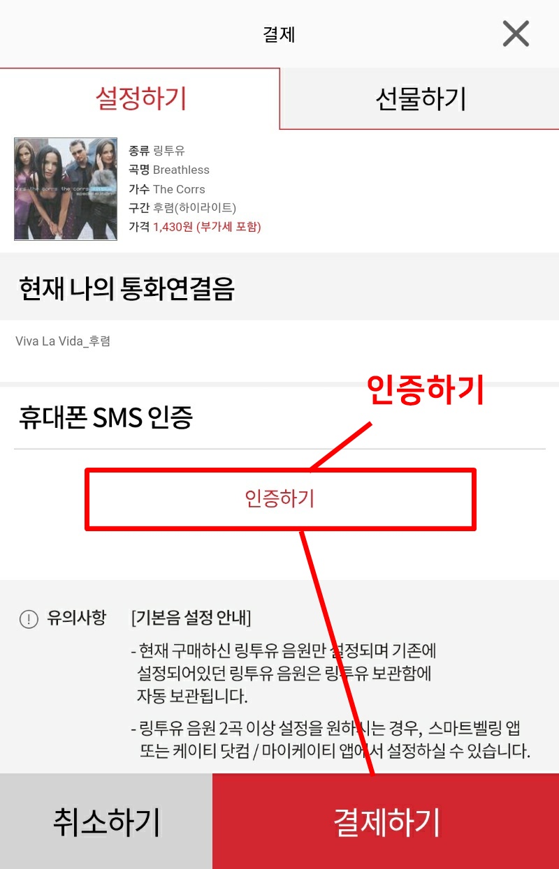 음원을 결제해서 설정할 수 있으며 한곡당 금액은 1,430원이다(역시 요금에서 차감).