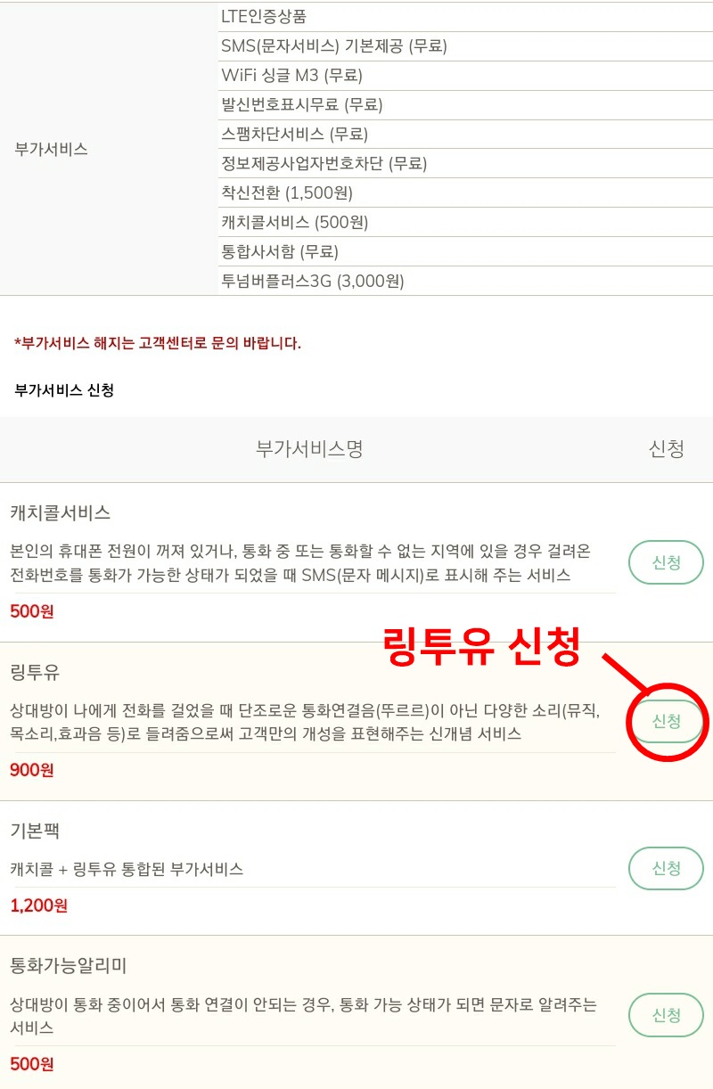 부가서비스 링투유 신청