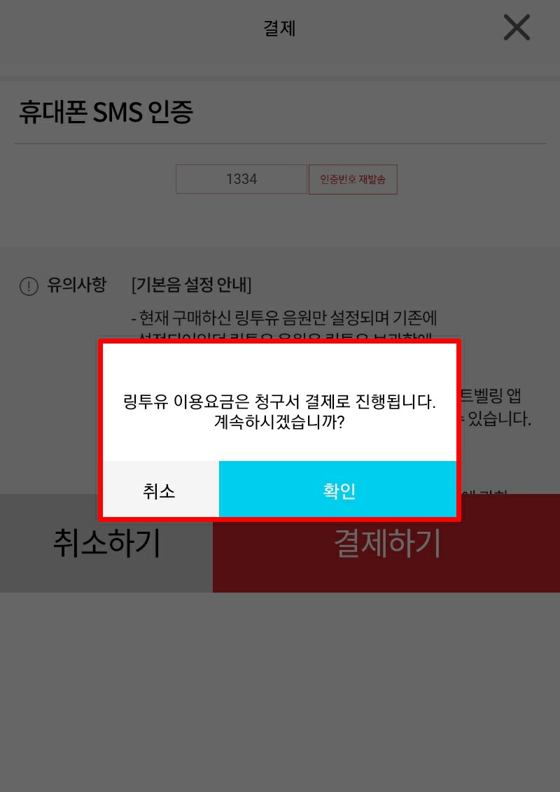 이 단계에서 본인인증을 휴대폰 SMS 인증으로 하게되는데, 선불폰도 본인인증이 되므로 전송된 인증문자를 잘 입력해주시면 됩니다. 링투유 이용요금은 청구서 결제로 진행된다고 나오는데, 선불폰이기때문에 선불결제가 필수입니다(선불폰은 소액결제가 안됩니다.) 어떻게 선불결제 하느냐고요?
