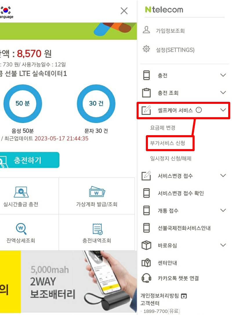 2. 앤텔레콤 부가서비스 신청