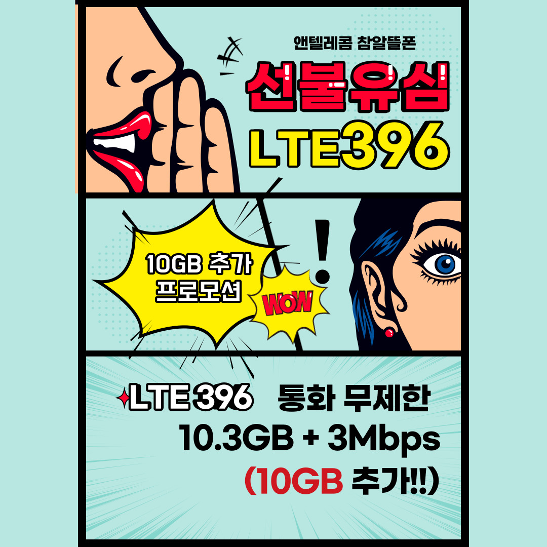 최근 선불유심 찾는 분들이 많아졌습니다. 더불어서 앤텔레콤은 LGU+와도 제휴를 했지요. 원래는 KT와 LG가 동일한 가격으로 요금제를 만들었는데 LGU+에서 파격적인 프로모션을 걸었어요. 바로 LTE 396 데이터 무제한 요금제입니다.