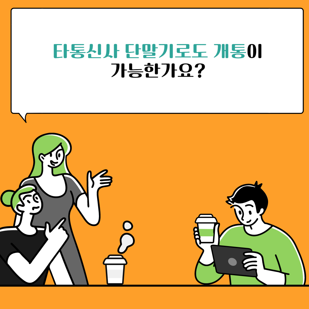 SKT단말기는 2008년 8월 이후 출시된 모델에 한해서 사용 가능하며, LGT 단말기는 2014년 8월 이후 출시된 단말기에 대하여 사용 가능합니다(부분적인 이용가능한 모델등 갤럭시 노트4 - N916L). 타사 출시된 단말기의 경우 각 이동통신사별 고유 규격이 탑재되어 통신사를 변경하면 MMS 서비스 등 이용에 제한될 수 있습니다. 2015년 이후 출시된 대부분의 단말기들은 통신사 상관없이 대부분 사용하실 수 있습니다. 휴대폰이 상대적으로 구형 모델이라면 상담을 통해 확인받으시기 바랍니다!!