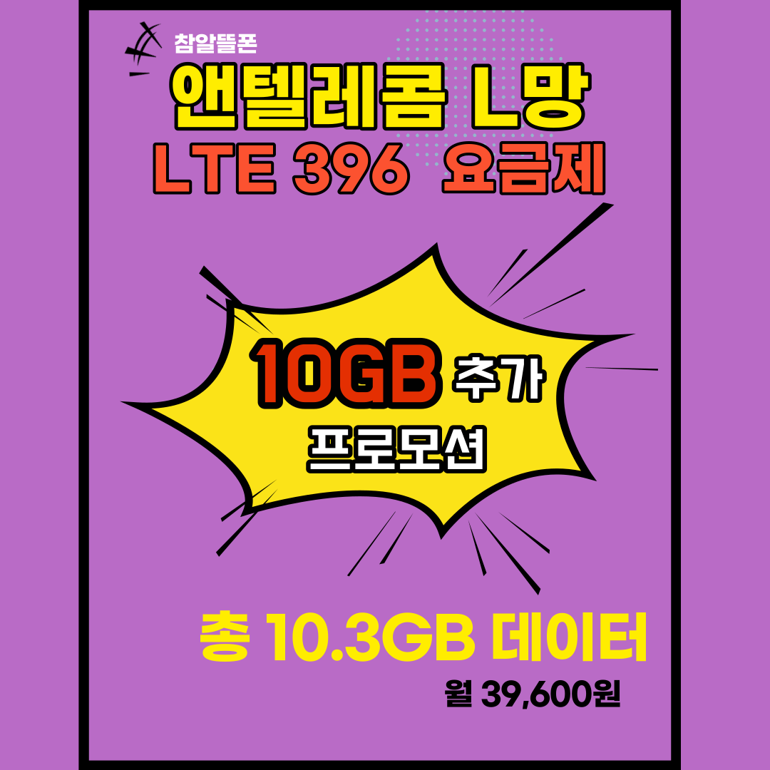 LTE 396요금제는 LGU+의 프로모션이 걸려있어요. 월 10GB의 추가 데이터를 제공하면서 타사대비 가장 효율적인 요금제가 되었습니다. 중간요금제라 말하긴 애매하지만, 통화, 문자, 데이터 모두 무제한이 가능한데 월 4만원이 안되는 가격 39,600원에 제공되는 '선불폰'이라는 것만으로도 상당한 메리트가 있습니다.