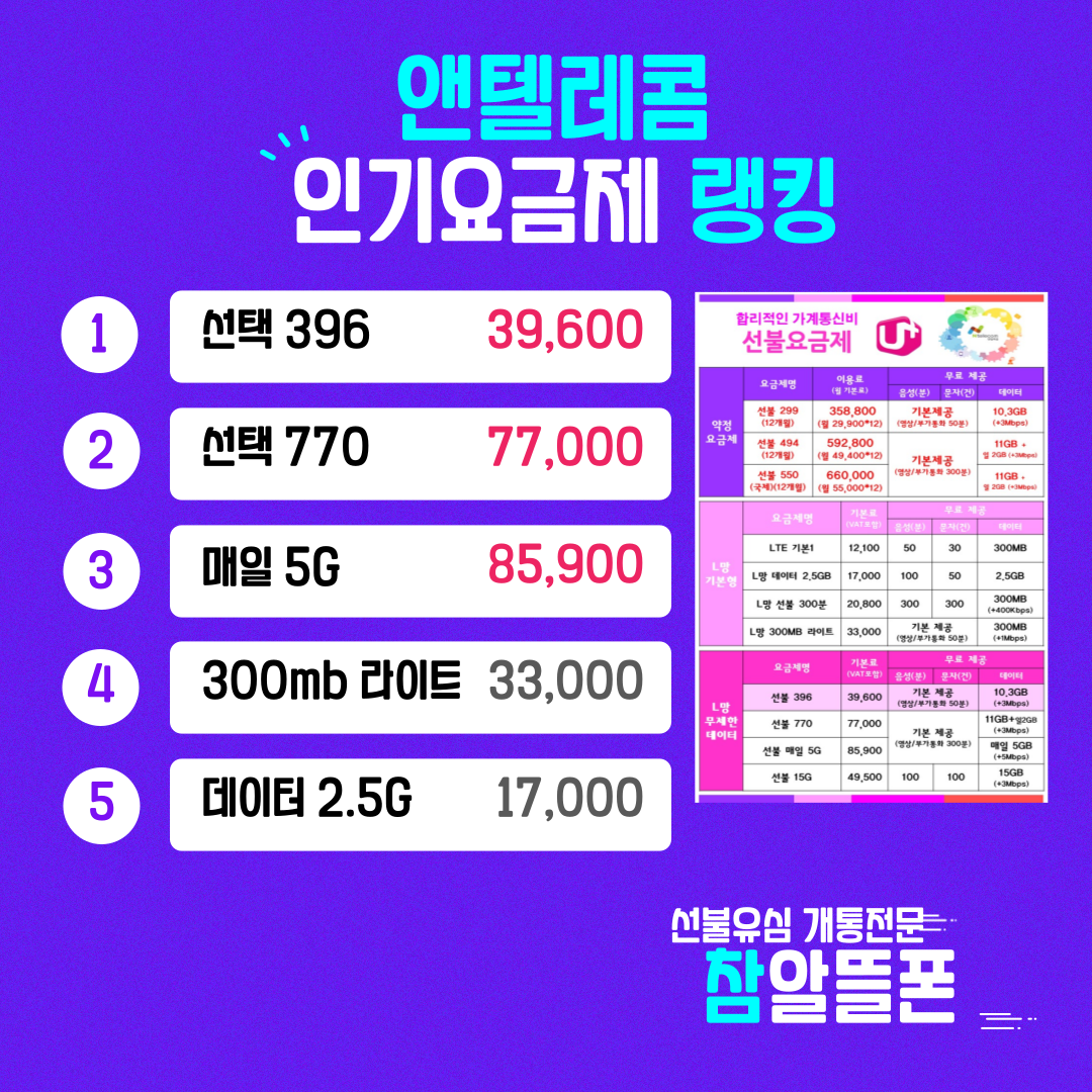추천 요금제 : 앤텔레콤 LTE 396