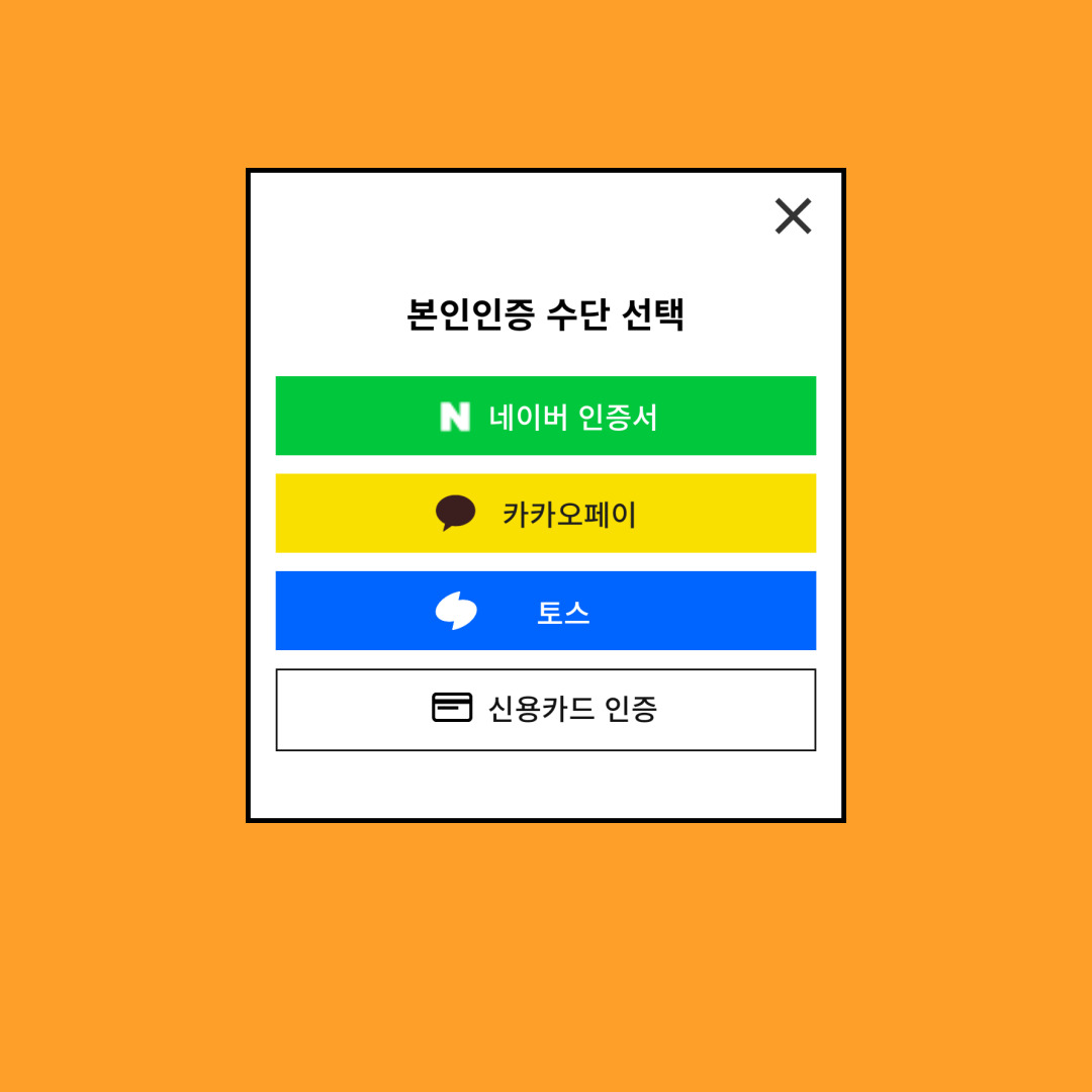 2. 본인인증 진행 (PASS, 카카오페이, 토스 등 택1)