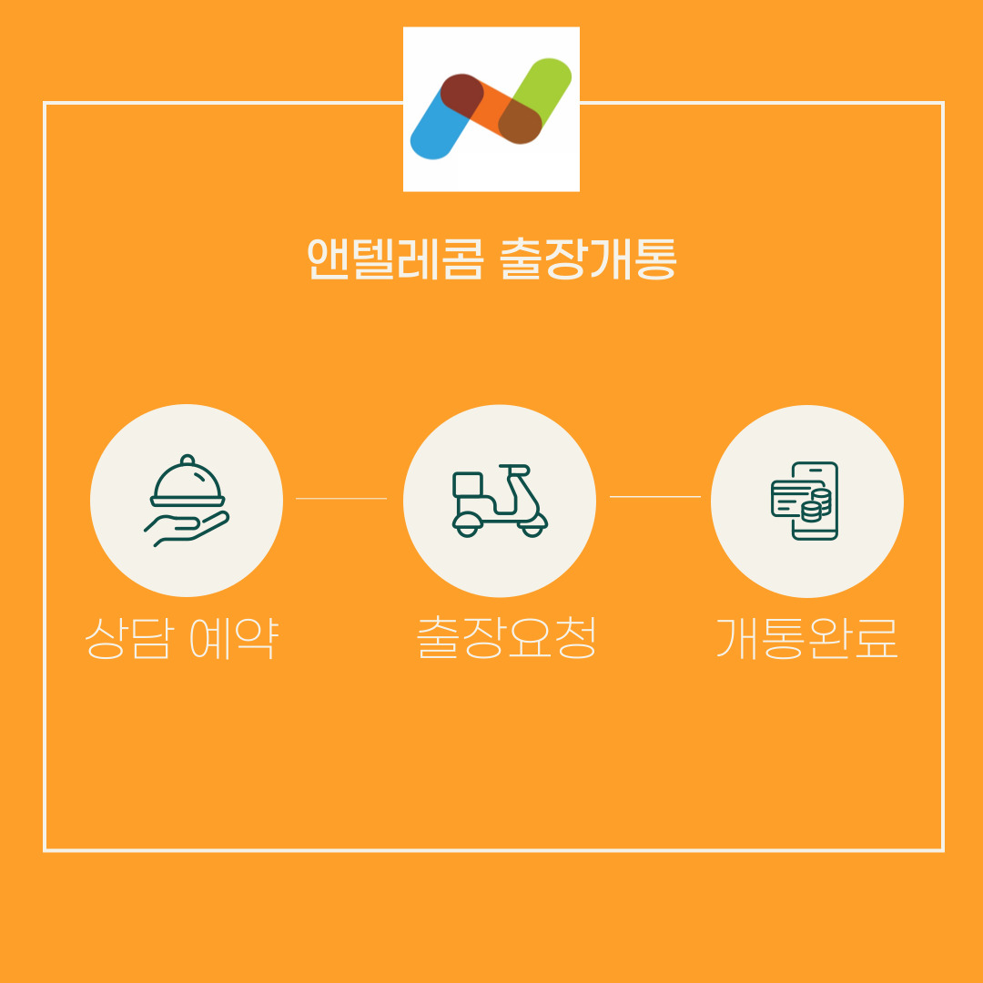 여건상 지점을 방문할 시간도, 인증을 통과 못해서 셀프개통도 안되는 경우가 있습니다.(또는 이미 앤텔레콤 사용중 추가개통 요청) 이런 경우, 담당자에게 시간과 장소를 정해서 출장요청을 할 수 있습니다. 담당자는 개인소유 태블릿 PC에 개통 전산프로그램을 통해서 언제어디서나 개통이 가능합니다. 보통 카페나 패스트푸드점에서 개통을 진행합니다. 경우에 따라서 고객님 댁으로 방문할 수도 있습니다.(출장비 있음)